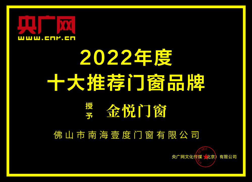 金悅門窗是佛山市南海壹度門窗有限公司旗下高端鋁合金門窗品牌:創立于2011年,位于廣東佛山南海區。金悅門窗主要生產高端定制鋁合金門窗、鋁合金門、陽光房等,集研發、設計、生產、營銷于一體門窗解決方案提供商。金悅門窗總部擁有5萬平方現代化生產基地,引入世界先進生產設備,公司嚴格按照國際質量管理體系標準進行產品生產。